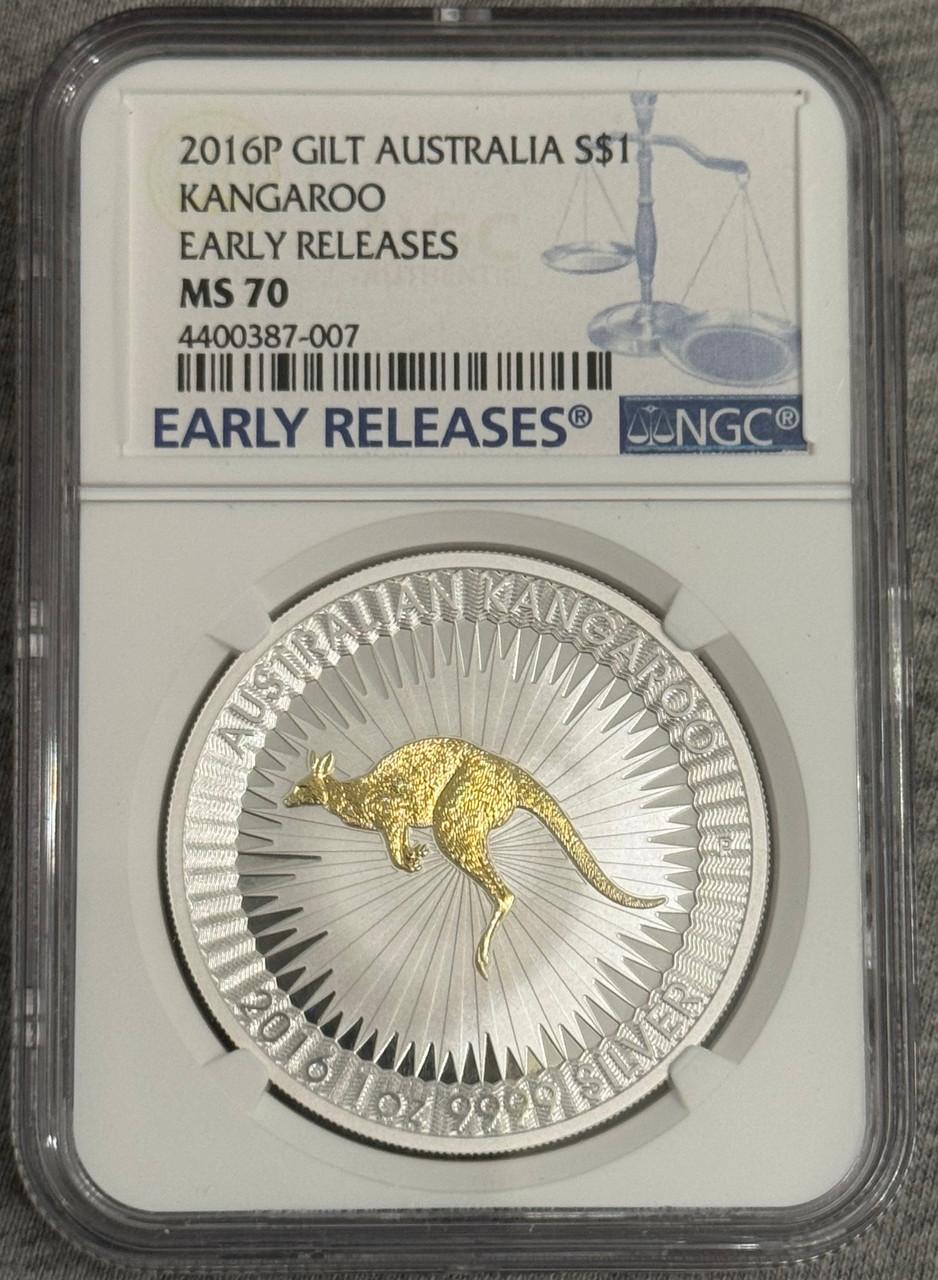 2016 P Australia GILDED Kangaroo Gild 1 oz Silver Coin NGC MS 70 ER LABEL