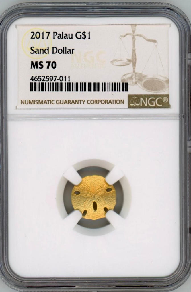 2017 SAND DOLLAR - 1 GRAM GOLD COIN PALAU $1 NGC 70