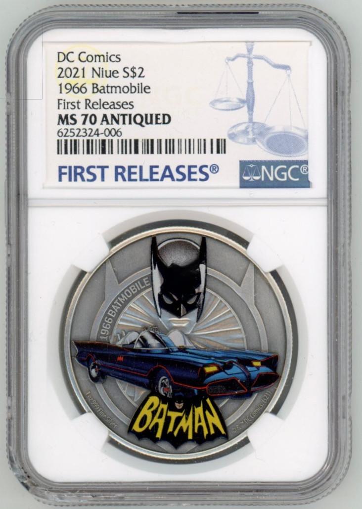 2021 Niue BATMAN DC COMICS 1966 BATMOBILE Silver Coin 1oz NGC MS 70 FIRST RELEASES