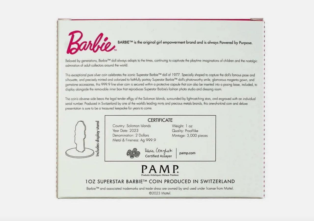 2023 Pamp Suisse Superstar Barbie 1 oz .9999 Silver Coin NGC 69 FR Mattel