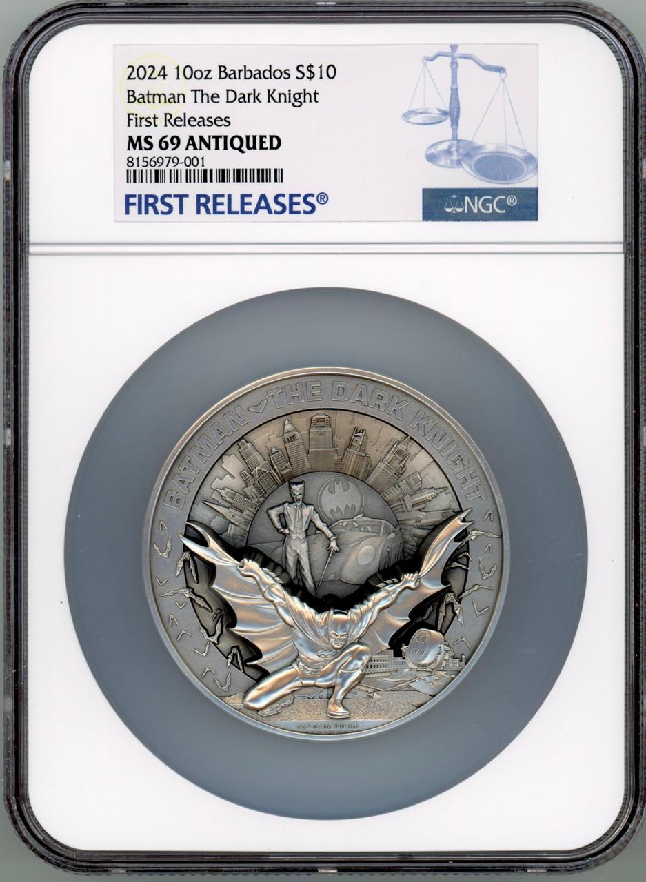 Batman The Dark Knight 2024 Barbados 10 oz $10 Pure Silver Multiple Layer Technique Coin NGC 69 FR