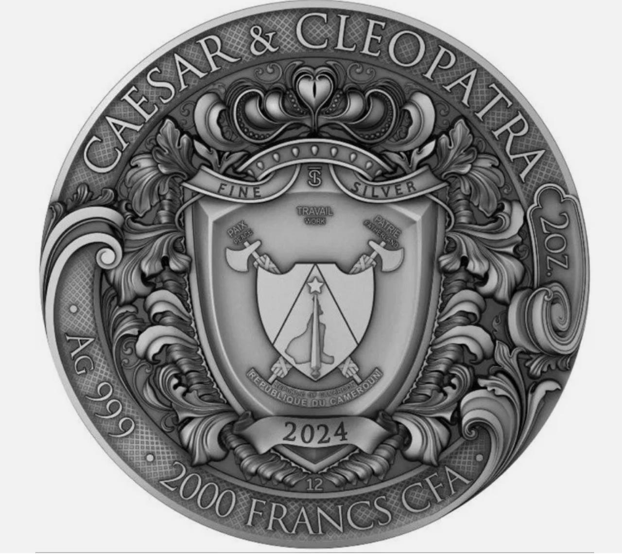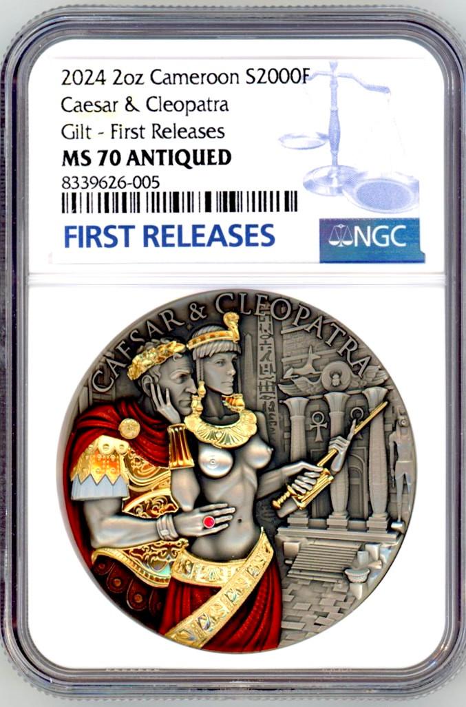 2024 Caesar & Cleopatra 2-oz High Relief Silver Coin Antiqued Ruby Insert