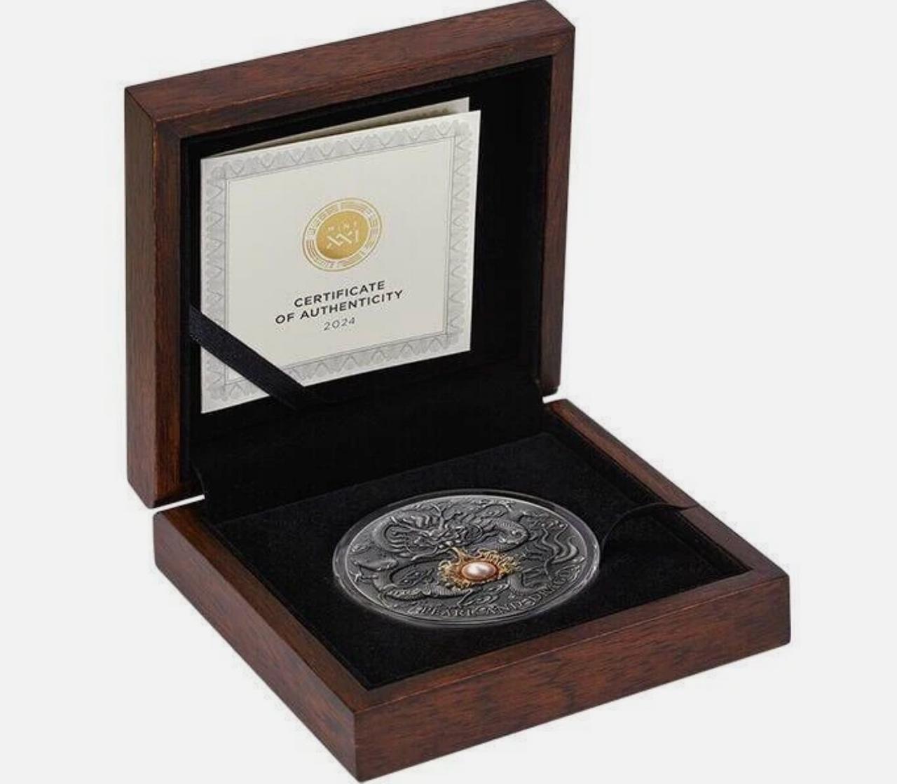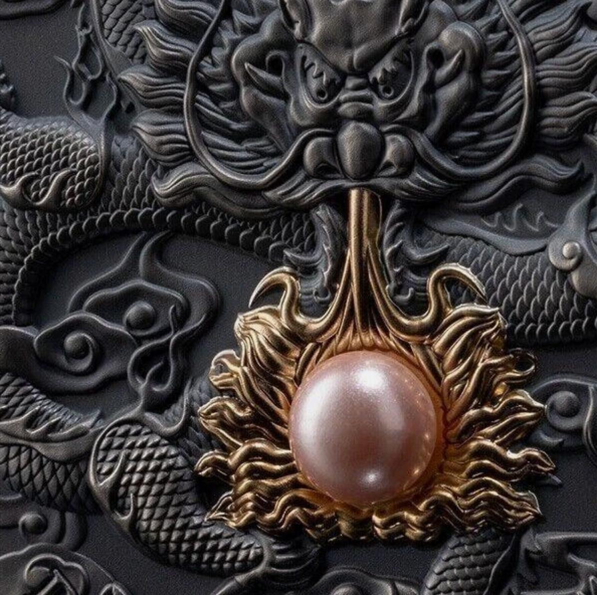 Pink Pearl and Dragon Divine Pearls 2 oz Antique finish Silver Coin 5$ Niue 2024