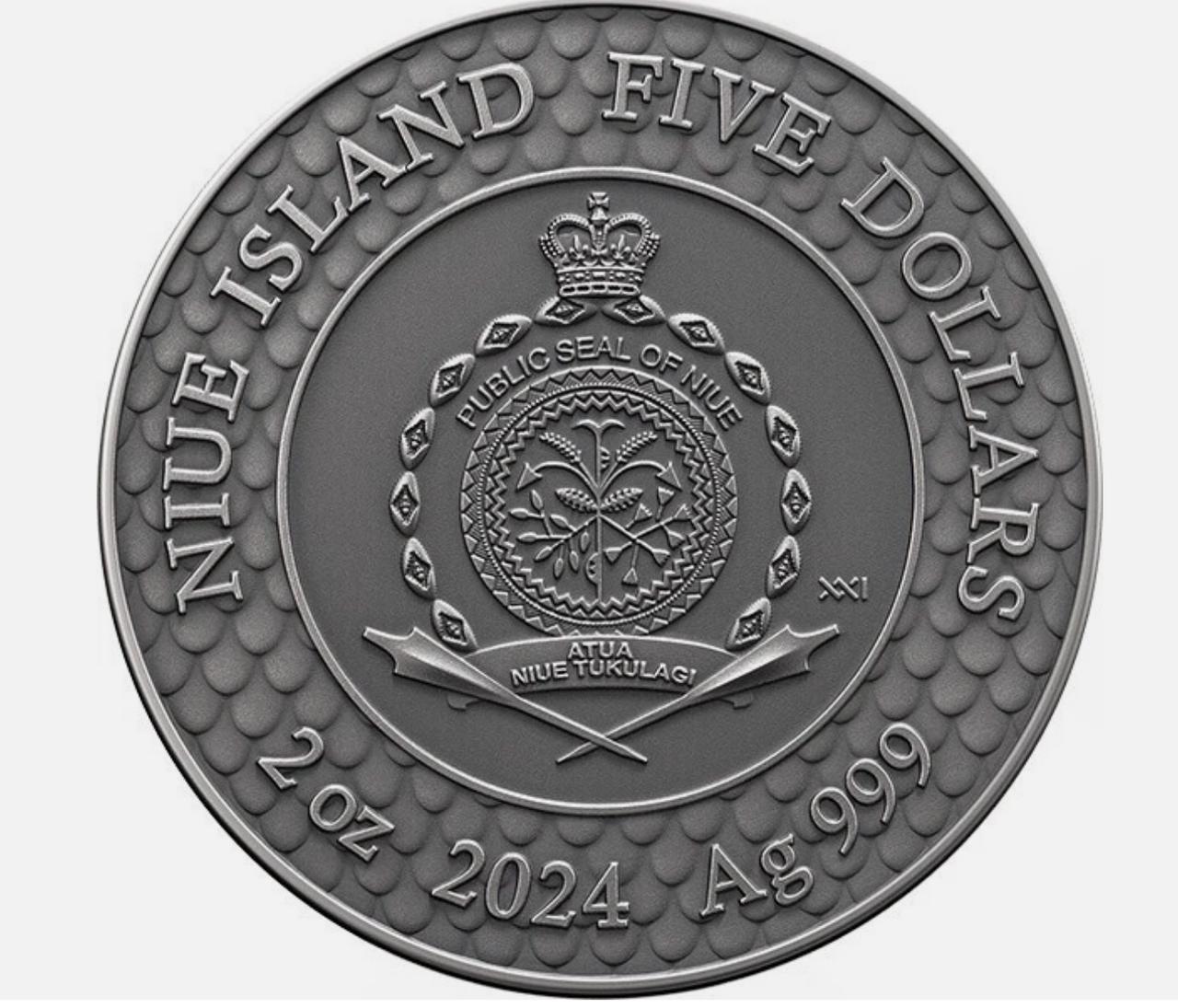 - Obverse: Depicts the coat of arms for Niue and $5 denomination.