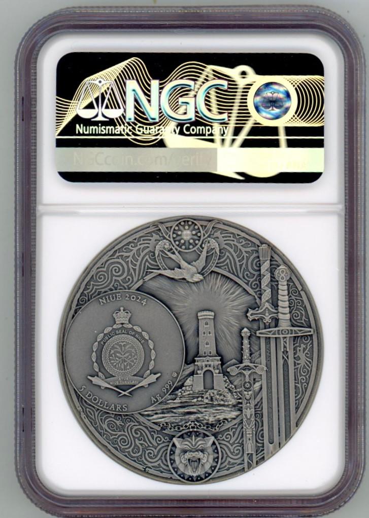 - Image of the issuer – the island of Niue, are symbols referring to the series, swords, and the titular Tower of The Swallow.