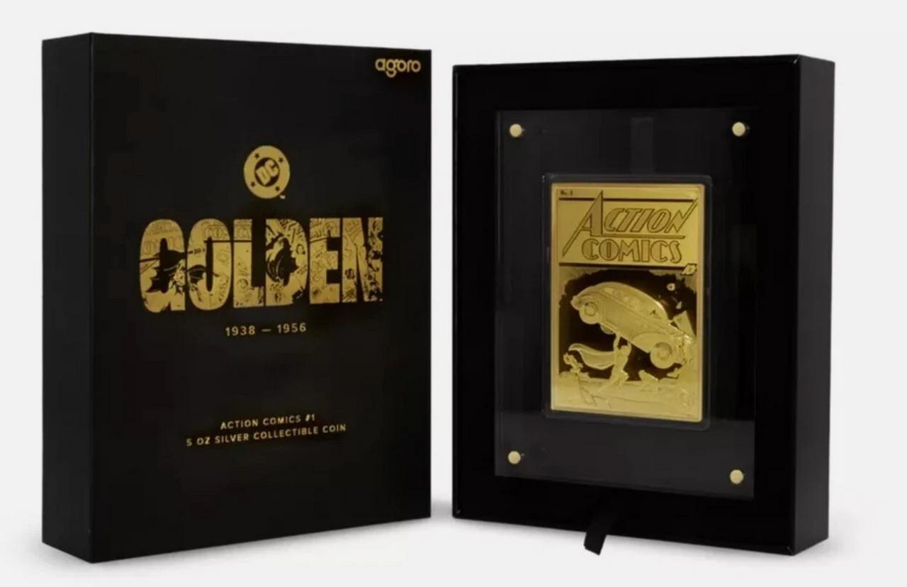 The 90 Years of DC Golden Era – Action Comics #1 5 oz Silver Coin honors a monumental milestone in comic book history. This eye-catching rectangular coin features the cover of Action Comics issue #1, the issue that marked the historic first appearance of Superman™ and ushered in the Golden Age of comics. Each detail of the comic is recreated with meticulous engraving, enhanced by a combination of frosted and mirror finishes. To complete the homage, the coin is gilded, capturing the brilliance of the golden age.