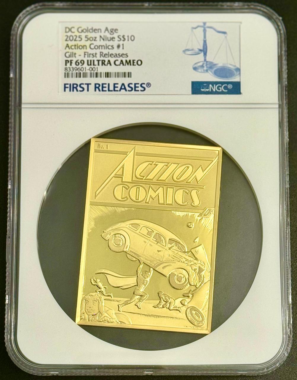 2025 Niue Golden Age 5 oz Silver 90 Years of DC Comics Action Comics #1 Gilded Coin NGC 69 FR