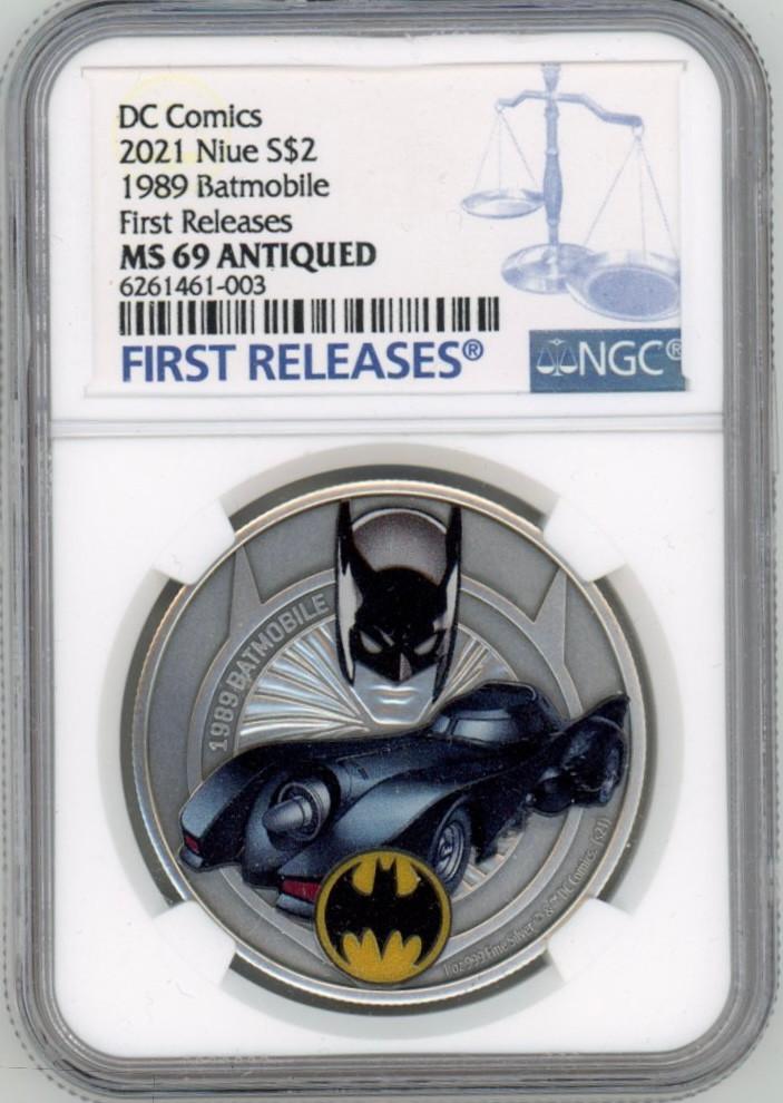 BATMAN DC COMICS 1989 BATMOBILE 2021 SILVER COIN 1oz NGC MS 69 FIRST RELEASES