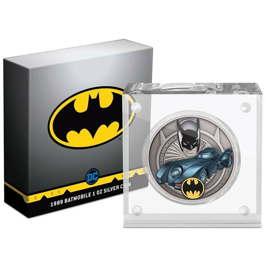 - STRUCK IN HIGHLY PURE SILVER – Each 1989 Batmobile Colorized & Antiqued Coin was struck by the New Zealand Mint in a full ounce of highly pure 99.9% fine silver and measures 40 mm in diameter.